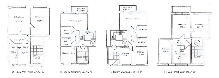 Hier sehen Sie einige Bilder aus dem Wohngebiet Aue, in denen die Wohnungsgenossenschaft "Wismut" Aue/Lößnitz eG Wohnungen zur Verfügung stellt, sowie nützliche Grundrisse einiger Wohnungstypen verschiedener Größen.